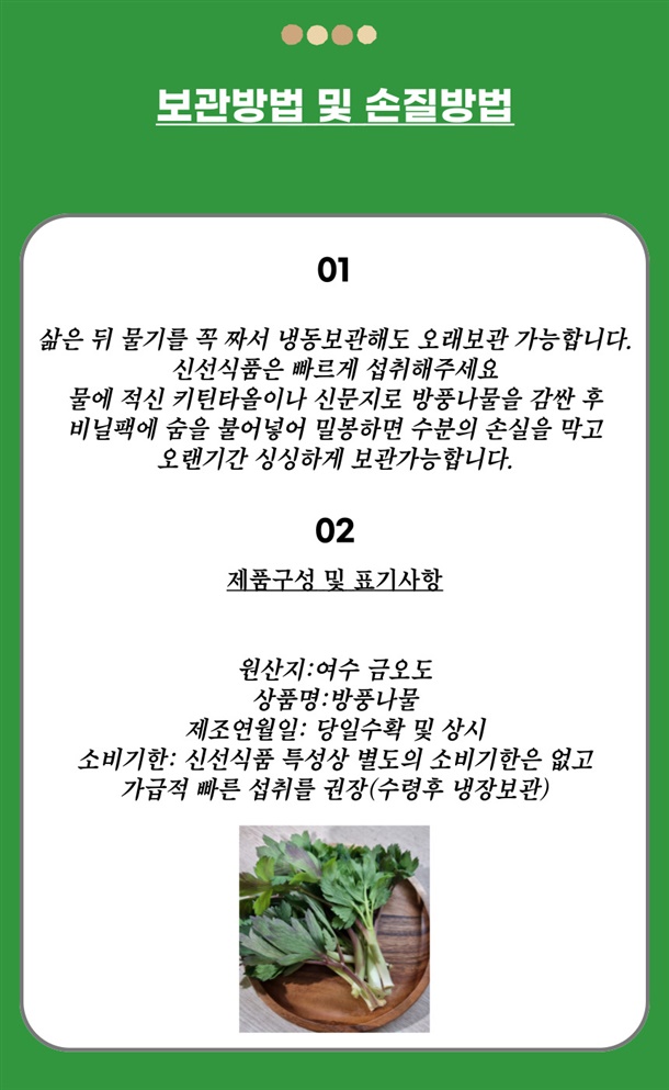 해풍맞고 자란 부드럽고 연한 제철 방풍나물